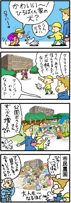マンションには法に基づき、区分所有者による管理組合がつくられます。共有財産となる共用部分、主にハード面での維持管理を行います。それに対し、住民同士の親睦や生活ルールの調整などソフト面のコミュニティ運営を行なうのが町内会です。草津の多くのマンションの場合、①マンション単独で町内会を組織 ②地元町内会にマンション住民が加入 ③管理組合の中にコミュニティ運営部門を設ける、のパターンが多いようです。マンガのお話だと②のパターンでしょうか。