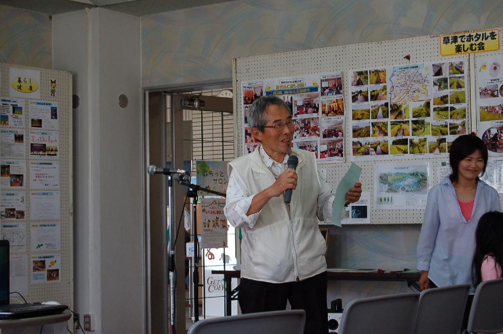 こんにちは!草津市コミュニティ事業団です(=^・^=)第7回「ホタルに親しむ集い」にお邪魔しました。このイベントは平成18年度ひとまちキラリ助成採択団体である草津でホタルを楽しむ会さんが、複数の団体と連携しながら開催しています。