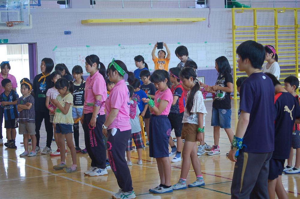 まずはアイスブレイクがはじまりました。最初はお互い緊張した面持ちでしたが、学生さんが積極的に子どもたちに話しかけるにつれ、すぐに打ち解けることができました。一度打ち解ければ、すぐにお兄ちゃん、お姉ちゃんと仲良しに。中にはお兄さんとじゃれあう場面も見られました。