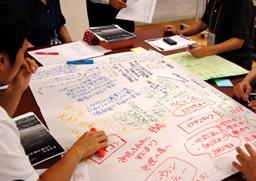 前回の会議で出たテーマごとにテーブルを配置し、それぞれ分かれて