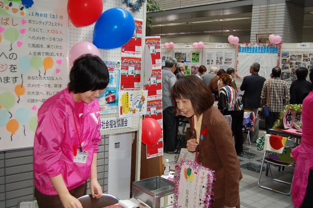 10月18日(土)・19日(日)に草津市役所や商店街がにぎわっていたのをご存知でしたか?今年は、草津市が誕生して60年という節目の年を一緒に盛り上げようとたくさんの団体の協力のもと、「くさつ市民アート・フェスタ2014」、「パワフル交流・市民の日」、「福祉を考える市民のつどい」、「くさつ子どもフェスタ」「上水道通水50周年事業」や「耐震化セミナー」の6つのイベントが合同で「市民ふれあい秋まつりinくさつ」を開催しました。