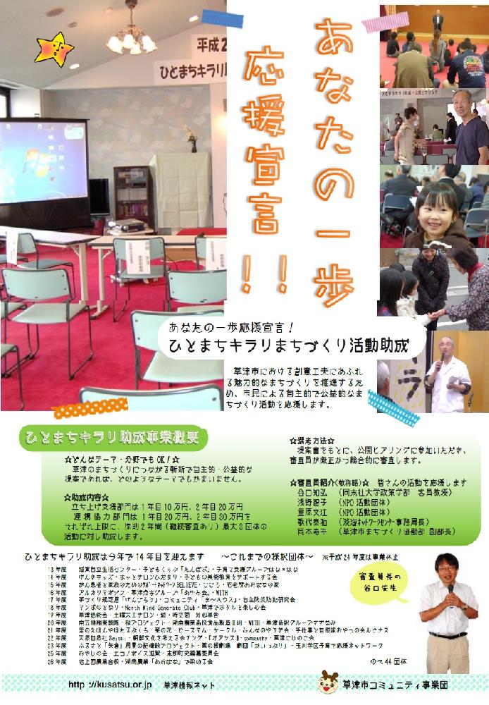詳しくは http://kusatsu.or.jp/support/jyoseikin/ または、TEL (077)565-0477 FAX (077)562-9340 メール com-com@mx.biwa.ne.jp まで、お気軽にご相談ください。