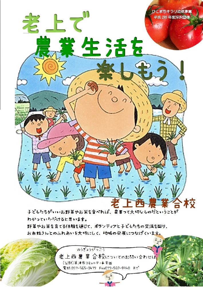 平成26年度採択団体は… ・老上西農業合校 「老上で農業生活を楽しもう」