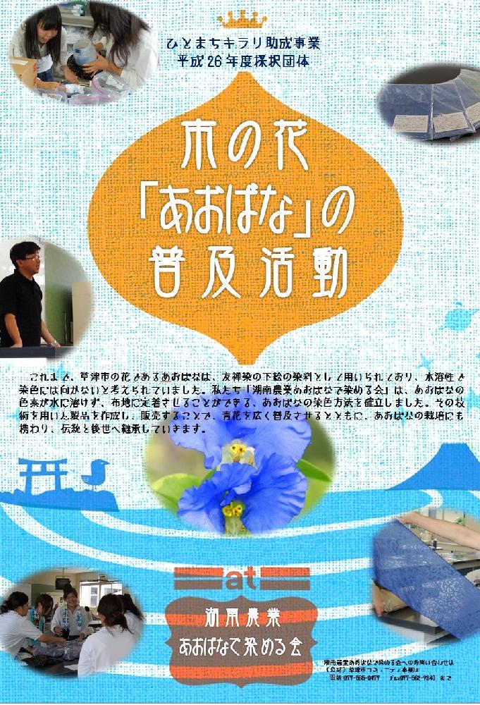・湖南農業あおばなで染める会 「市の花『あおばな』の普及活動」です。 来年度はさらに活動の幅を拡げ、より一層充実した活動を展開されることでしょう。