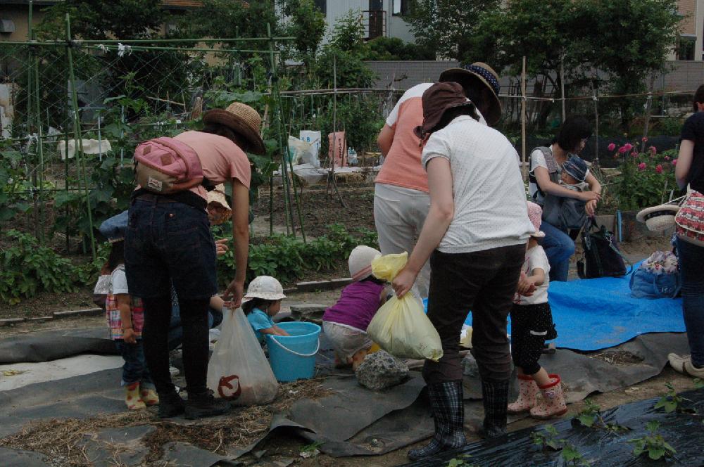 「ジャガイモ好き?」「スキ~」「何が好き?」「ポテト~♪」 どうやらフライドポテトが好きらしいです(笑) ひとしきりジャガイモ掘りを楽しんだ子どもたちは、 手洗い用の水で水遊び。 お母さんたちはずっしり重いジャガイモ入りの袋を持って帰りました。