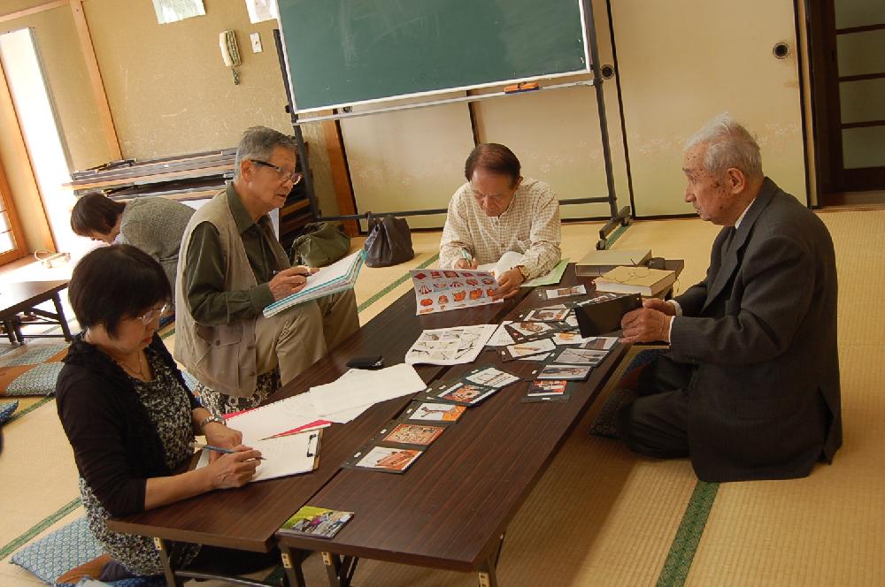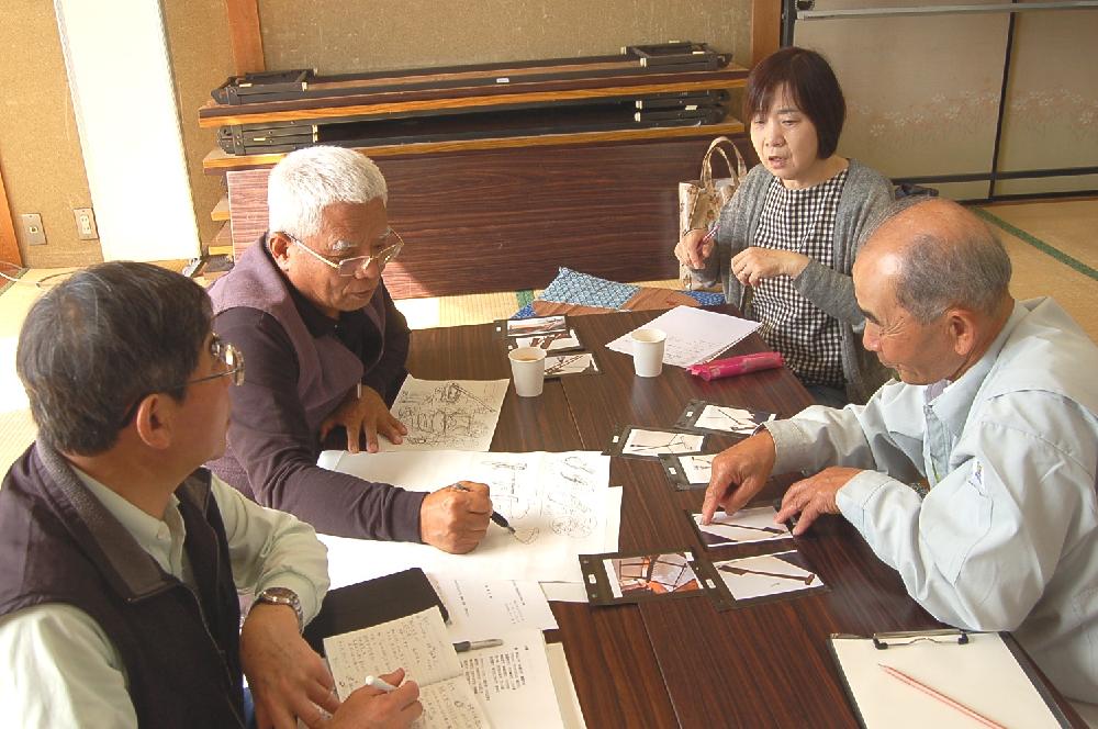 2班に分かれての聞き取りでした。農作業順に、田を耕すところから稲刈り前までの各工程の民具について話を聞きました(稲刈り以降は次回の聞き取りです)。途中からは写真よりも絵を中心に話が進みます。