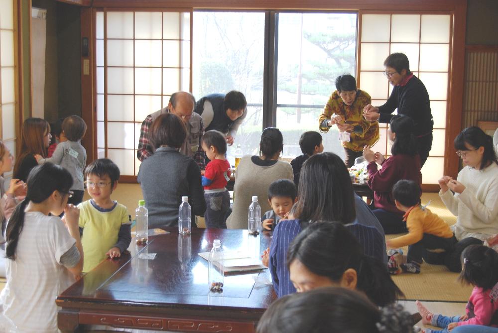 H27年度ひとまちキラリ採択団体 子育てサロン「コスモスの会」の活動で「竹笛づくり」を見学してきました。15組を超える親子の参加で大変にぎわっていました。まずはどんぐりの入ったマラカスづくりから。小さな指でドングリをつまんでペットボトルに入れる姿のかわいらしいこと!