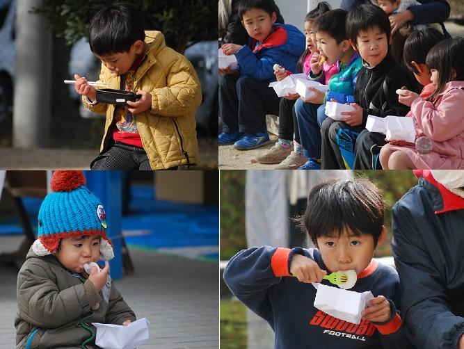 つきたてのおもちを小さな口いっぱいに ほおばった子どもたちの
