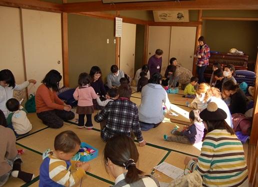 平成28年1月22日(金) 年末年始の温かさがウソのように、厳しい寒さがやってきましたが、 今日もコスモスの会の活動には広い和室がいっぱいになるくらい たくさんの親子が参加してくれました。 代表の宇野さんは、玄関を入ってくる子どもやお母さんたち一人一人の名前を呼び、声をかけてコミュニケーション。