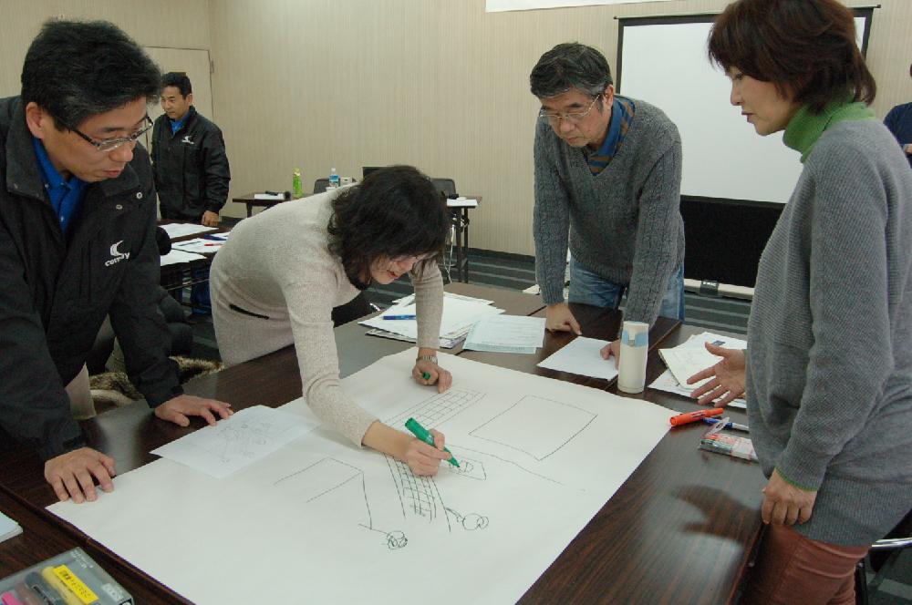 1講目では、他都市の身近な生活課題を解決する取り組み事例を交えながら、コミュニティ・ビジネスのポイントについて御講義いただきました。 堀野さんは講座の中で、コミュニティ・ビジネスに必要なのは結び目のある強固なつながりよりも、状況に応じてついたり離れたりするゆるいつながりが大切だと受講者にアドバイスをしました。 講座の後半では、事業を計画するのに必要な自己分析を行い、自身の特性を確認を行いました。